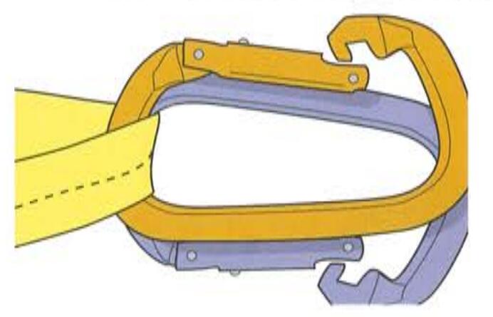 無鎖安全鉤,或者未鎖緊的有鎖安全鉤容易引起滑出現(xiàn)象(rollout)。安全鉤的尺寸和形狀、將要鉤掛的器材以及您的扭轉(zhuǎn)動作都可能造成開口被推開和安全鉤的滑出現(xiàn)象。查看與您安全吊帶連接的安全鉤鉤掛點,以確保這種可能不會發(fā)生,然后保證安全鉤開口一直處于鎖緊狀態(tài),或者使用成對的無鎖安全鉤。